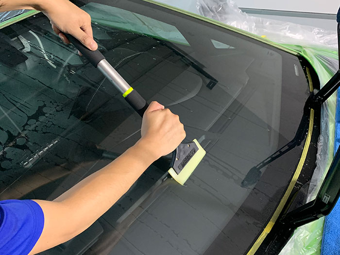よく車検対応か?とご質問がありますが、当店ではフィルム装着後に透過率70%が維持できるかチャックの上施工しますが、念のためにご自身が車検を受ける検査機関への当合わせが必要です。